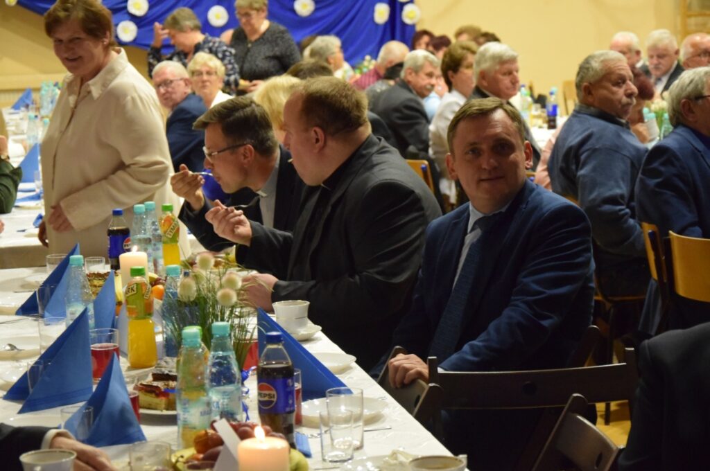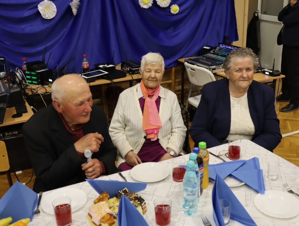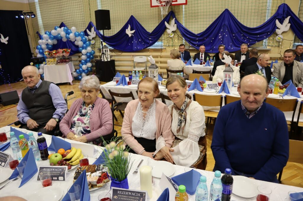 KGW Demblin, Jadowniki Mokre, Miechowice Małe, Miechowice Wielkie, Sikorzyce, Wola Rogowska. Wszystkim osobom, które w czasie uroczystości służyły swoją pomocą i zaangażowaniem. Dziękuję Wójtowi za współpracę. Dziękuję Pani Dyrektor Zespołu Szkolno-Przedszkolnego Jadwidze Łucarz wraz z pracownikami za pomoc w organizacji. Oprócz seniorów na imprezie zagościli: były Wójt Gminy Wietrzychowice Pan Stanisław Kusior wraz z małżonką Jadwigą Kusior; Radny Powiatu Tarnowskiego Pan Stefan Dzik, Przewodnicząca Rady Gminy Wietrzychowice Pani Dorota Stokłosa oraz Zastepca Przewodniczącej Rady Gminy Wietrzychowice Pan Grzegorz Duda, Ks. Proboszcz Parafii Wietrzychowice Jacek Walczyk, Wikary Parafii Wietrzychowice Ks. Jarosław Kokoszka , Dyrektor Zespołu Szkolno-Przedszkolnego Pani Jadwiga Łucarz, Dyrektor DPS w Wietrzychowicach Pani Małgorzata Więcław z mężem, Pani Kierownik USC Ala Szewczyk, Pani Dyrektor Żłobka Dominika Zielińska.