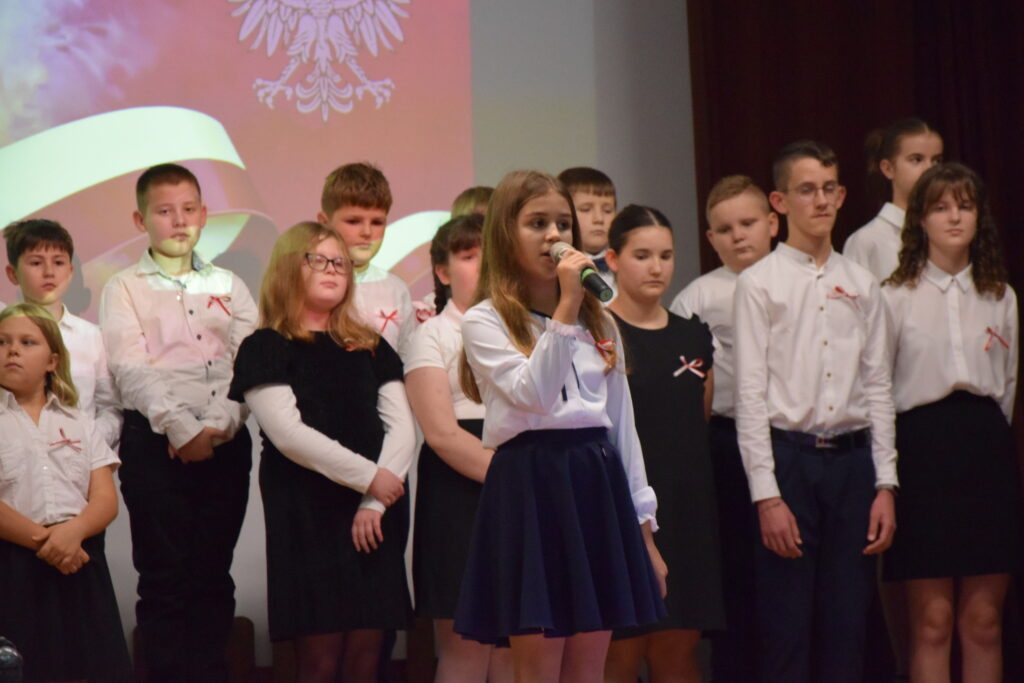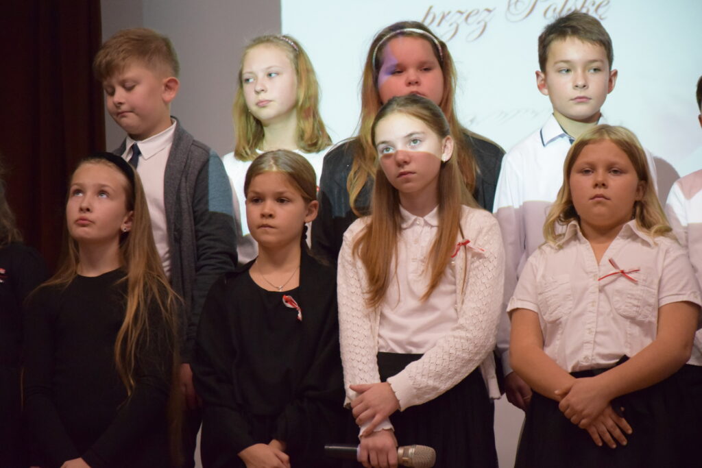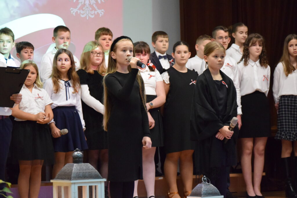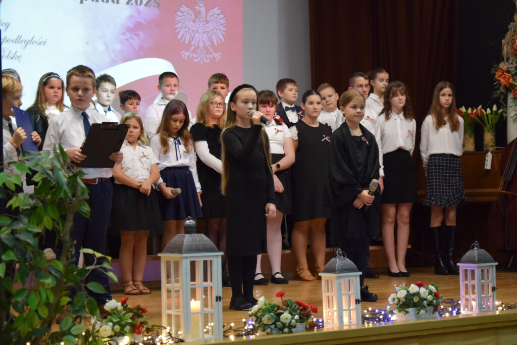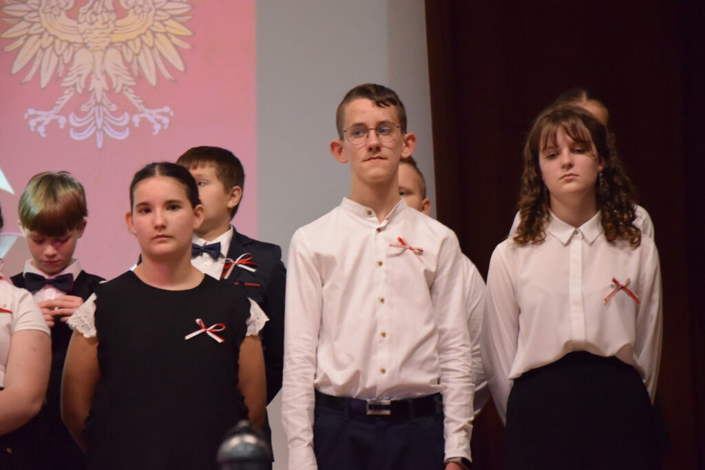 Następnie na scenie pojawili się utalentowani uczniowie klas IV, VI i VII z Zespołu Szkolno-Przedszkolnego w Wietrzychowicach. Wystawili oni wzruszający montaż słowno-muzyczny, przygotowany pod kierunkiem nauczyciela, Pana Mariusza Giży. Młodzi artyści w piękny sposób przybliżyli nam historię i ducha tamtych czasów.