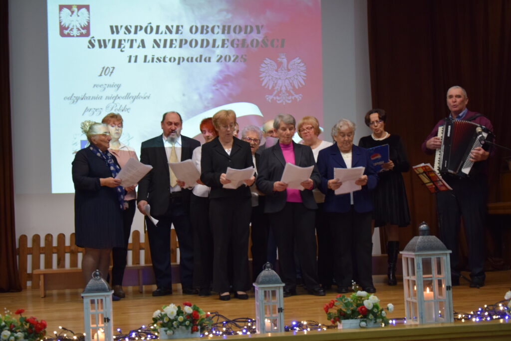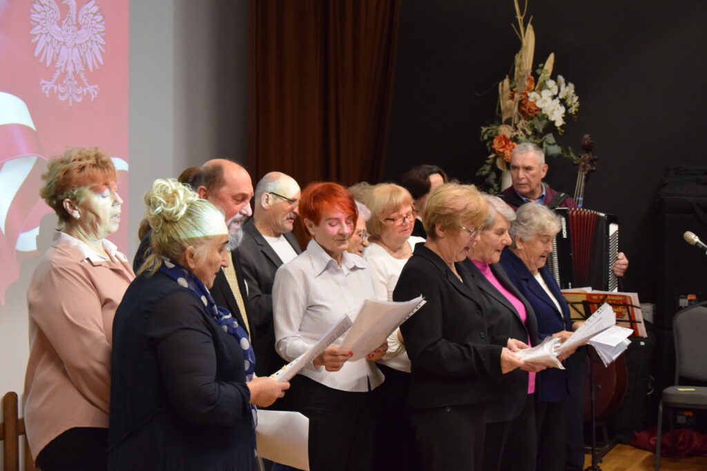 Kolejnym punktem programu był występ naszych lokalnych artystów! Pan Radny Tadeusz Dulian wraz z Klubem Seniora z Miechowic Wielkich zaprezentowali utwory, które przypomniały nam melodie i słowa niosące w sobie ducha minionych lat. Na koniec wspólnie przy akompaniamencie pianina i gitary wyśpiewaliśmy pieśni patriotyczne.