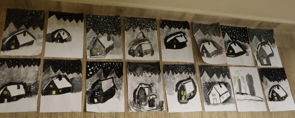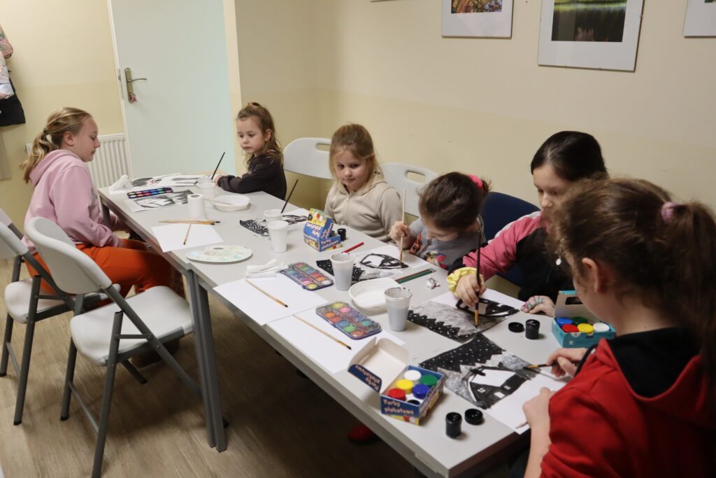 16 Grudnia 2025 rozpoczęły się warsztaty plastyczne w Gminnym Centrum Kultury w Wietrzychowicach. Uczestnicy mieli okazję poznać podstawy malarstwa z wykorzystaniem farb plakatowych, tworząc prace przedstawiające zimowy domek w górach oraz bożonarodzeniową bombkę. Warsztaty prowadzi Pani Jadwiga Gorla-Dyrektor GCK w Wietrzychowicach