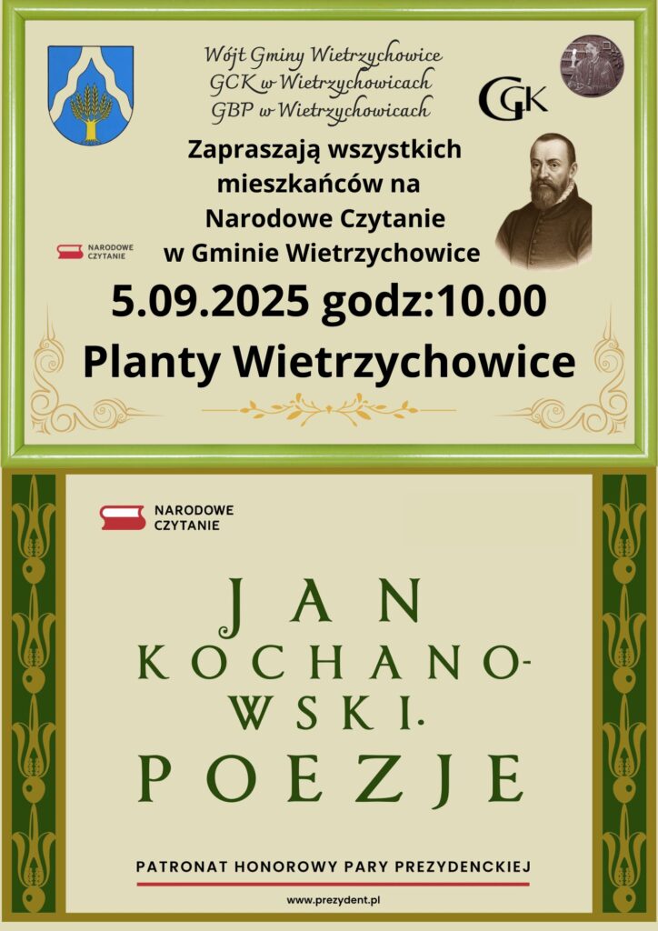 Zapraszamy na Narodowe Czytanie w Gminie Wietrzychowice
